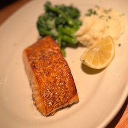Let's start off by saying the food is pretty great! We went for my birthday and they gave my kid ice cream! I got the salmon and it looked amazing when it came out it had cilantro on it and a lemon on the side, it smelled great ! Our server was really nice too! Except we kept trying to get her attention but she was not paying attention. Our food took a little bit of time coming out! The walls had pretty pictures on them, and it all matched! But the tables did not match the rest! So overall I would give this restaurant 4 out of 5 stars! Very nice! Good job Houston's!!!!!!